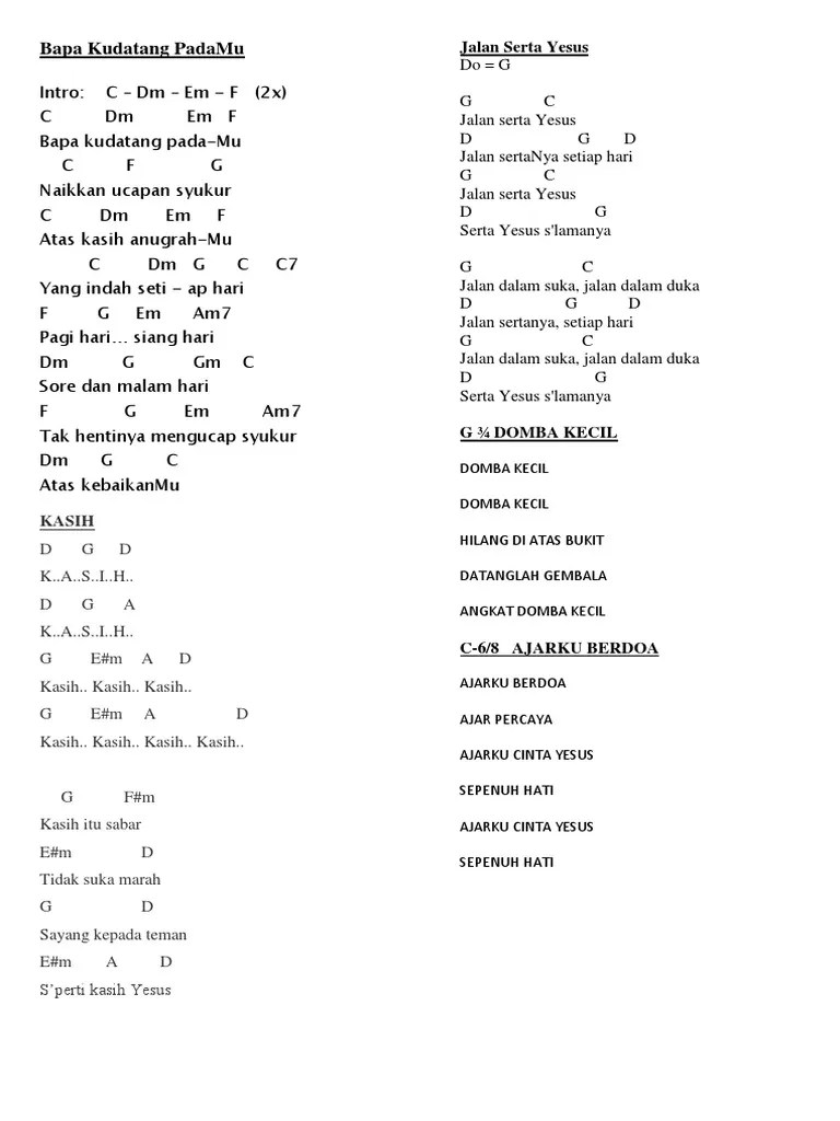 Tak usah ku takut, sbab kau besertaku. D am em g bait : G dm bapaku datang am c menyembahmu disini g . D am bapaku datang em g menyembahmu disini d am kupercaya kau em g ada . Bapa kudatang menyembahmu di sini kupercaya kau ada bagiku tak usah kutakut sebab kau sertaku tak usah ku bimbang kau di dalamku tak usah ku cemas kau . Dan kunci gitar ku nyanyi haleluya lirik lagu bapa ku datang . Bapa kudatang menyembahmu disini kita. Berikut ini lirik dan chord lagu kubersyukur bapa dari symphony worship. Bapaku datang em g menyembahmu disini d am kupercaya kau. C gm dm f bait : Lirik lagu kunyanyi haleluya chord gitar intro : verse 1 g c banyak yang kau perbuat. Chord kunyanyi haleluya (symphony worship) intro :